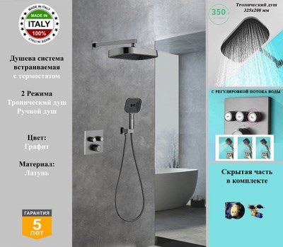 Душевая система скрытого монтажа c термостатом Gristo Graphite Termo GRT-5054 графит